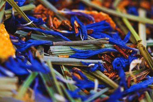 Rooïbos, écorces d’orange, écorce de citron, fleurs de bleuets
