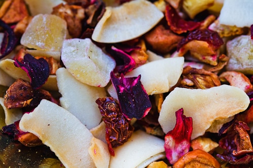 Infusion de noix de Coco, ananas confit, pomme, hibiscus, cynorhodon