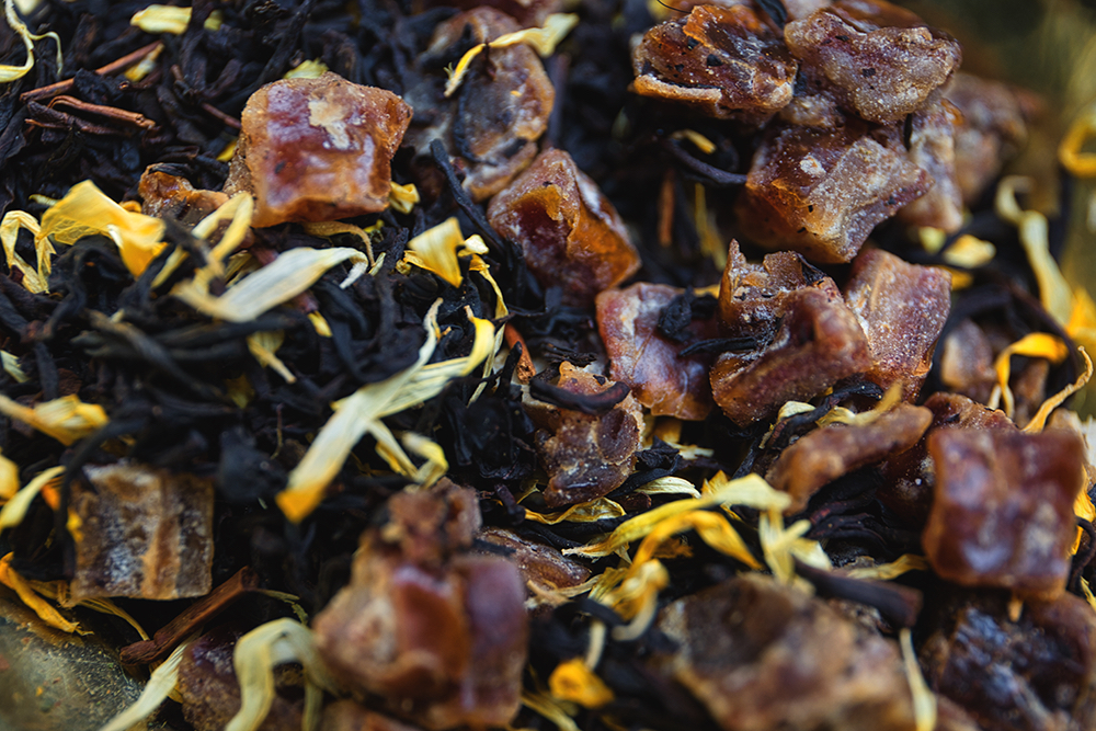 Thé noir assam, dates, gousses de vanille, caramel naturel (sucre)