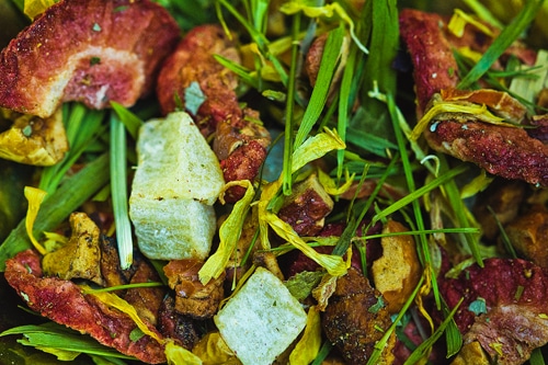 Infusion de fraises des bois, morceaux de pêche, feuilles de bambou, hibiscus