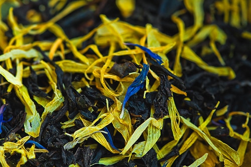 Thé noir russe, Assam, pamplemousse, citron, bergamote, fleurs de bleuet