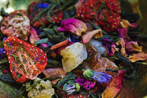 Thé vert Sencha, abricot, ananas, myrtille, pétales de rose, tranches de fraise, fleurs de violette, mauve